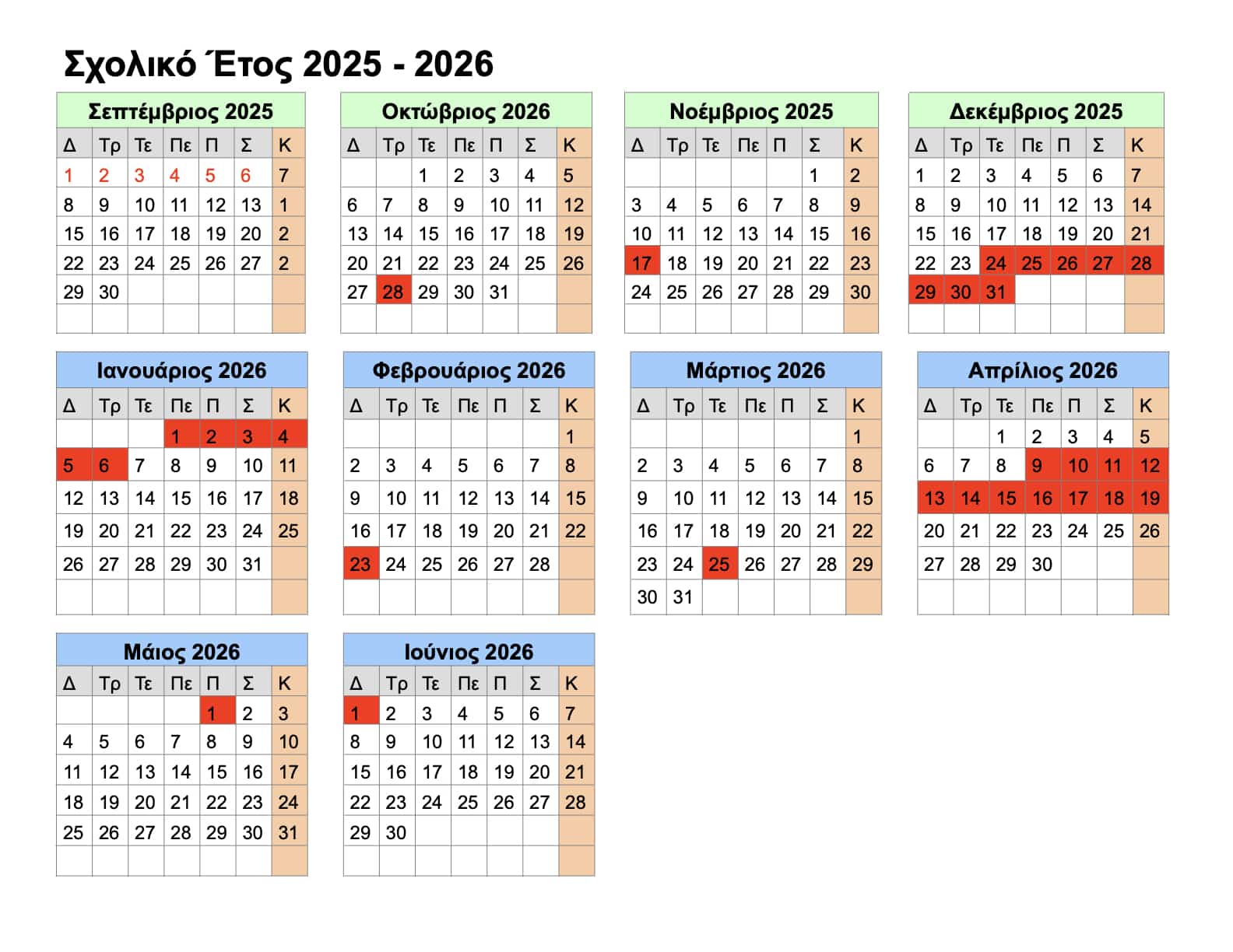 Μπορείτε να δείτε το ημερολόγιο της σχολικής χρονιάς 2025-2026 παρακάτω: